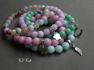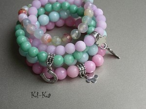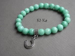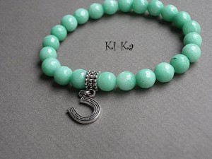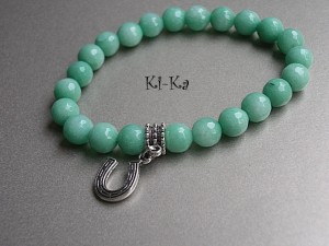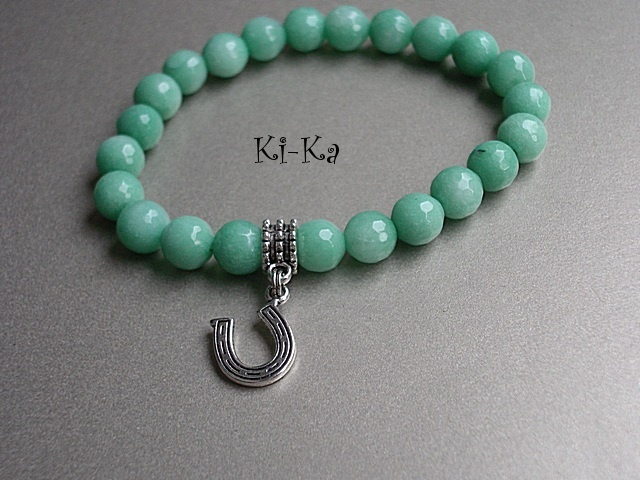 Bransoletka wykonana z naturalnych minerałów w kolorze miętowym - fasetowane jadeity [8mm] oraz elementów w kolorze srebra. Pasuje na nadgarstek 15,5- 16,5cm. Bransoletka na gumce silikonowej. Biżuteria ozdobnie zapakowana. Bransoletka może stanowić komplet z innymi - przykładowe zdjęcia.