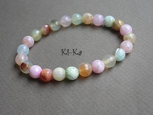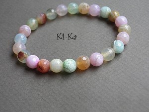 Bransoletka wykonana z kamieni półszlachetnych - spękanych agatów w pastelowych kolorach [6mm]. Biżuteria ozdobnie zapakowana. Zdjęcie pierwsze przedstawia przykładowy set. Cena dotyczy bransoletki z wielokolorowych agatów.