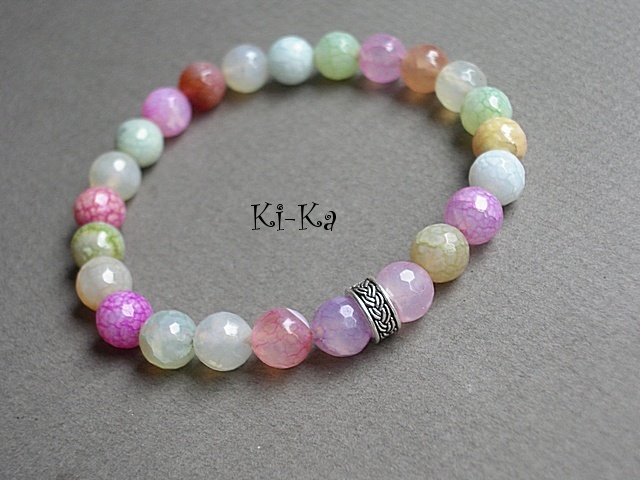 Bransoletka wykonana z naturalnych minerałów [jadeity 8mm] oraz elementów w kolorze srebra. Pasuje na nadgarstek 15- 16,5cm. Bransoletka na gumce silikonowej. Biżuteria ozdobnie zapakowana. Bransoletka może stanowić komplet z innymi modelami - przykładowe zdjęcia
