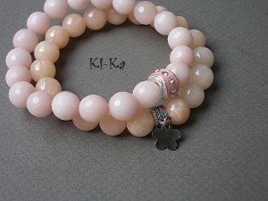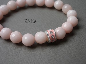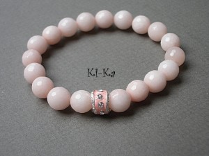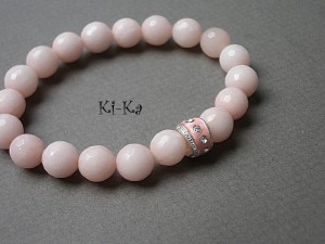 Bransoletka wykonana z fasetowanych kuleczek jadeitów w kolorze nude [10mm] oraz elementów w kolorze srebra. Bransoletka na gumce silikonowej. Pasuje na nadgarstek 15,5 - 16,5cm. Biżuteria ozdobnie zapakowana. Bransoletka może stanowić komplet z innymi bransoletkami - przykładowe zdjęcia.