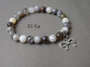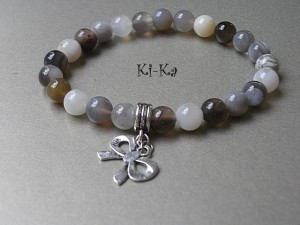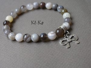 Bransoletka wykonana z naturalnych minerałów - agaty botswana [8mm] oraz elementów metalowych w kolorze srebrnym. Pasuje na nadgarstek 15,5-16,5cm. Bransoletka na gumce silikonowej. Biżuteria ozdobnie zapakowana. Bransoletka może stanowić komplet z innymi bransoletkami - przykładowe zdjęcia.