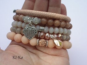 PROJEKT AUTORSKI. WSZELKIE INNE PODOBNE MODELE TO KOPIE NARUSZAJĄCE PRAWA AUTORSKIE. Komplet pięciu bransoletek wykonanych z naturalnych kamieni: jadeity matowe [10mm], jadeity [8mm], agaty wysadzane cyrkoniami [8mm], kamień słoneczny [8mm], krysztalków [8 x 6mm], rzemienia z ekologiczne skóry, przywieszki z kryształkiem Swarovskiego, przekładki shamballa wysadzanej krysztalkami Swarovskiego oraz elementów metalowych w kolorze srebra. Bransoletki pasują na nadgarstek 15,5 - 16,5cm. Biżuteria ozdobnie zapakowana