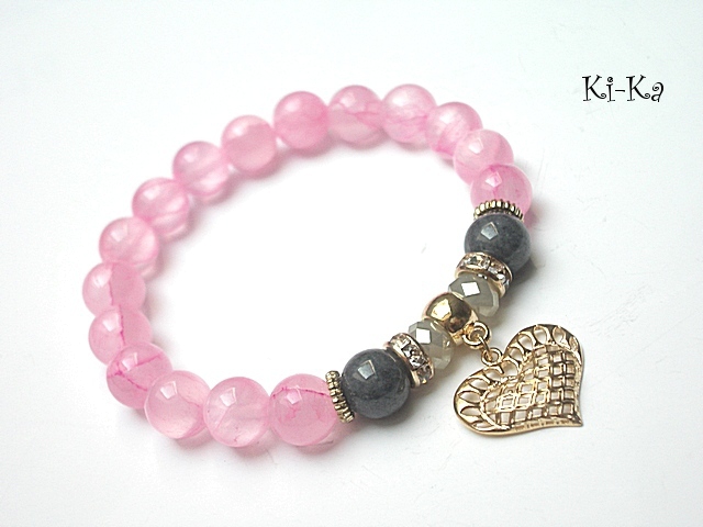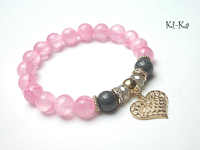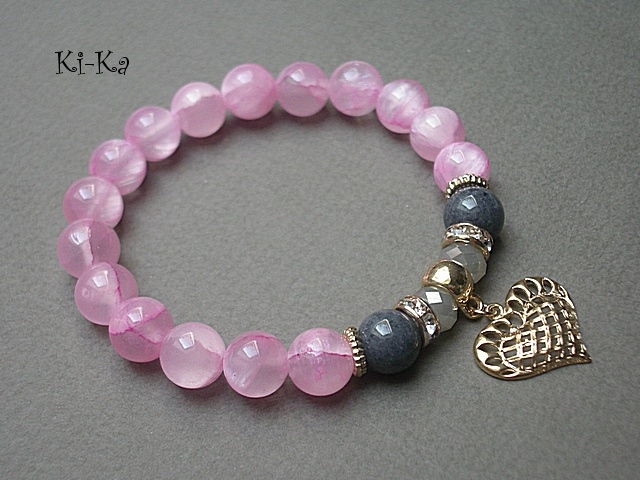 Bransoletka wykonana z naturalnych kamieni - marmur [10mm], kryształków fasetowanych [8 x 6mm] oraz elementów metalowych w kolorze złota. Bransoletka na gumce silikonowej. Pasuje na nadgarstek 16-17cm. Biżuteria ozdobnie zapakowana. Możliwość dopasowania bransoletki do nadgarstka - wcześniej prosimy o kontakt.