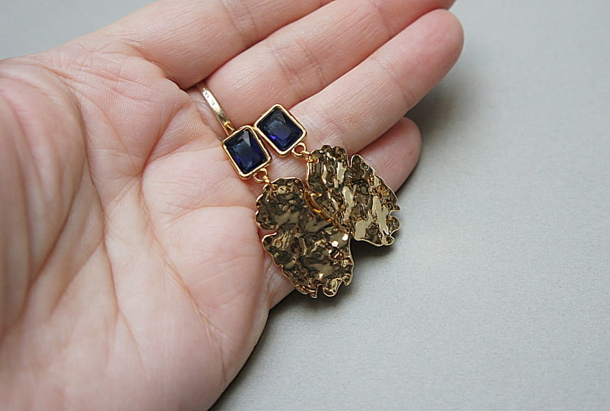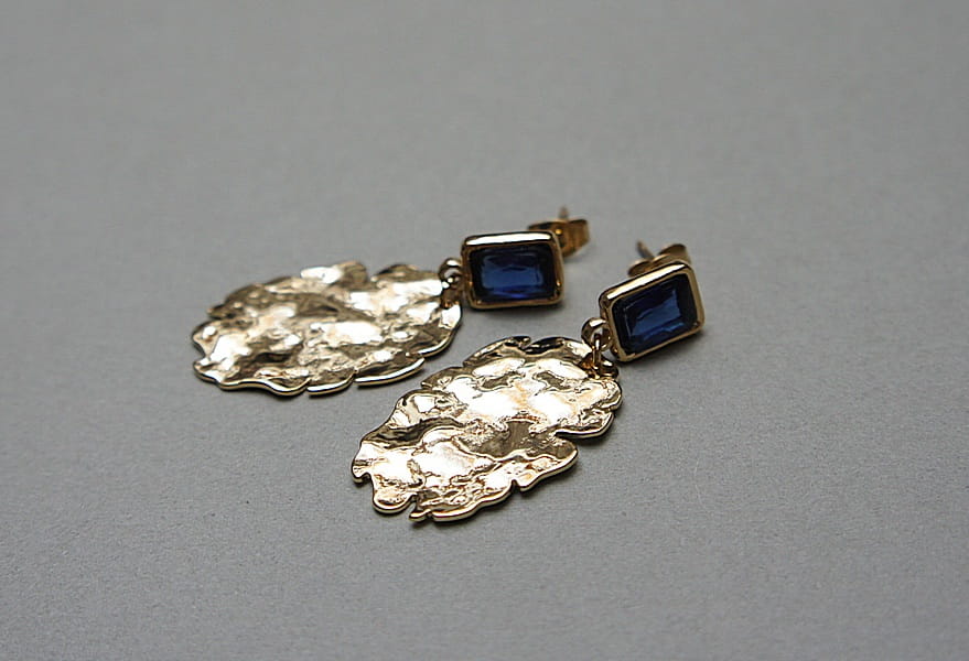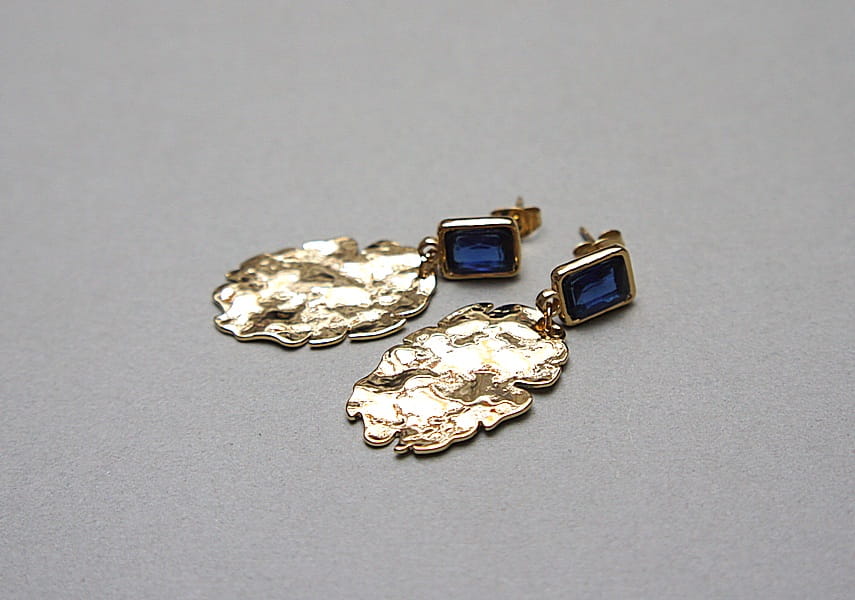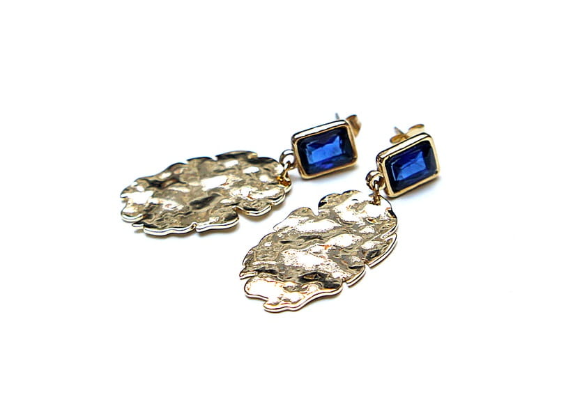 Kolczyki wykonane z pozłacanej stali szlachetnej [bigle] oraz mosiądzu platerowanego. Długość kolczyków: ok. 4,2cm. Biżuteria ozdobnie zapakowana.