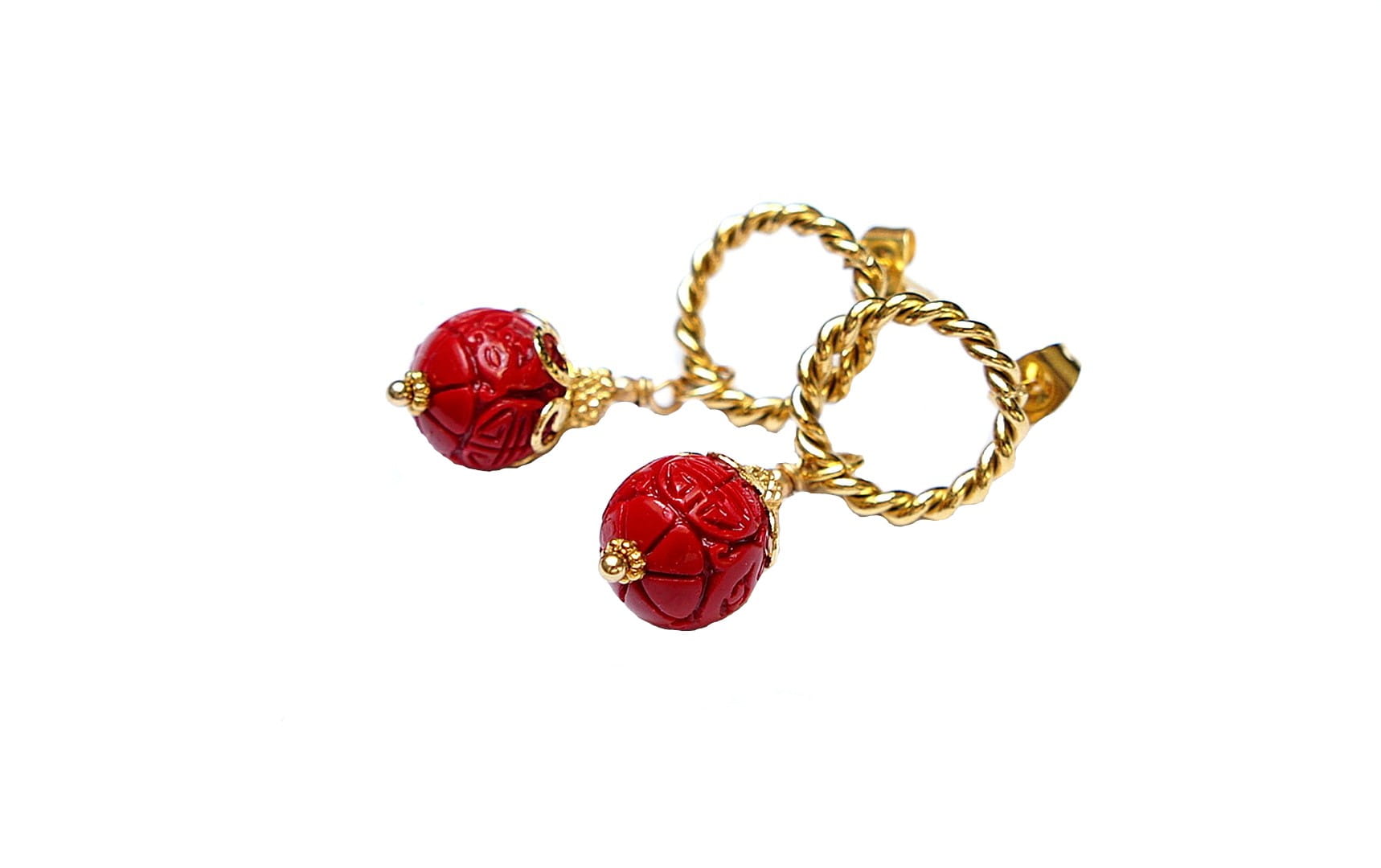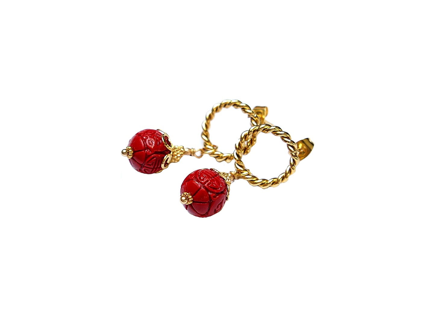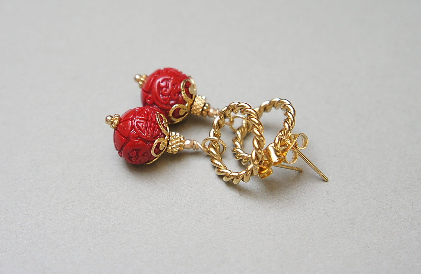 Kolczyki wykonane z naturalnego, rzeźbionego korala [12mm], hematytu platerowanego, fasetowanego [2mm] oraz z pozłacanej stali szlachetnej. Długość kolczyków: ok. 3,7cm. Biżuteria ozdobnie zapakowana. Stal szlachetna jest hipoalergiczna, nie rdzewieje, nie traci blasku, nie śniedzieje. Biżuteria wykonana ze stali szlachetnej jest świetną alternatywą dla biżuterii ze srebra.