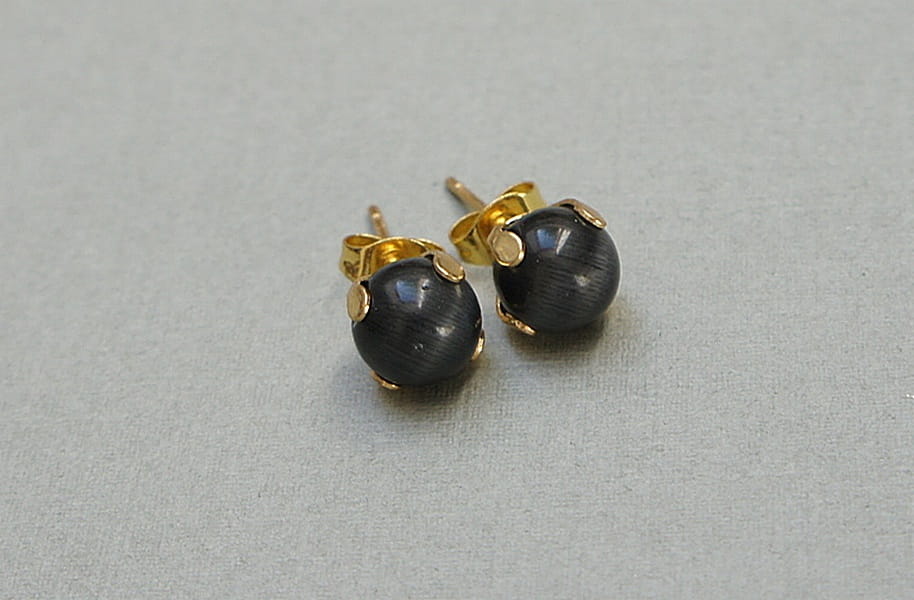 Delikatne kolczyki wykonane z naturalnych minerałów - kocie oko [8mm] oraz z pozłacanej stali szlachetnej. Zapięcie - sztyfty; Biżuteria ozdobnie zapakowana.