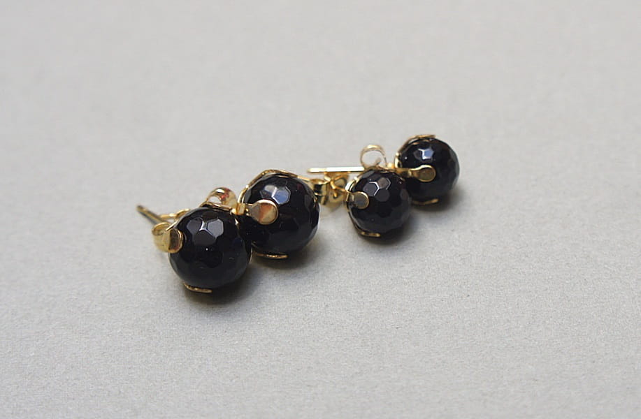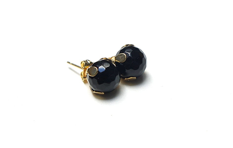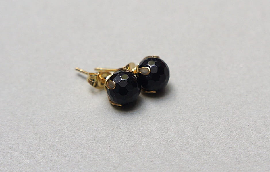 Delikatne kolczyki wykonane z naturalnych minerałów - onyks fasetowany [8mm] oraz z pozłacanej stali szlachetnej. Zapięcie - sztyfty; Biżuteria ozdobnie zapakowana. Stal szlachetna jest hipoalergiczna, nie rdzewieje, nie traci blasku, nie śniedzieje. Biżuteria wykonana ze stali szlachetnej jest świetną alternatywą dla biżuterii ze srebra.