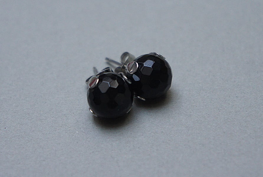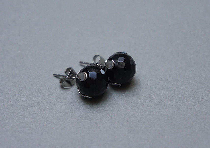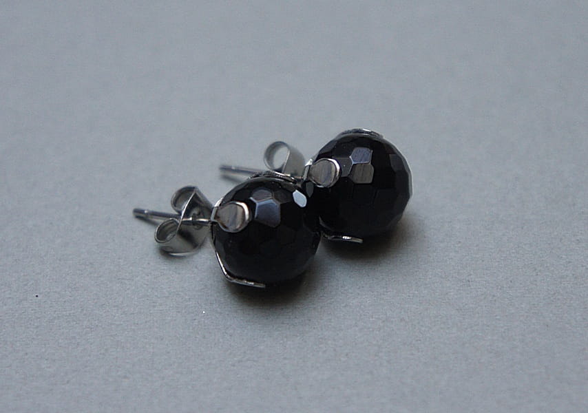 Delikatne kolczyki wykonane z naturalnych minerałów - onyks fasetowany [10mm] oraz ze stali szlachetnej. Zapięcie - sztyfty; Biżuteria ozdobnie zapakowana. Stal szlachetna jest hipoalergiczna, nie rdzewieje, nie traci blasku, nie śniedzieje. Biżuteria wykonana ze stali szlachetnej jest świetną alternatywą dla biżuterii ze srebra.