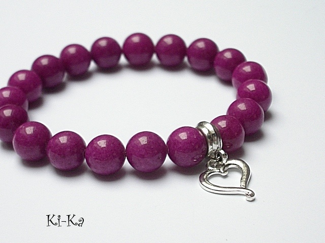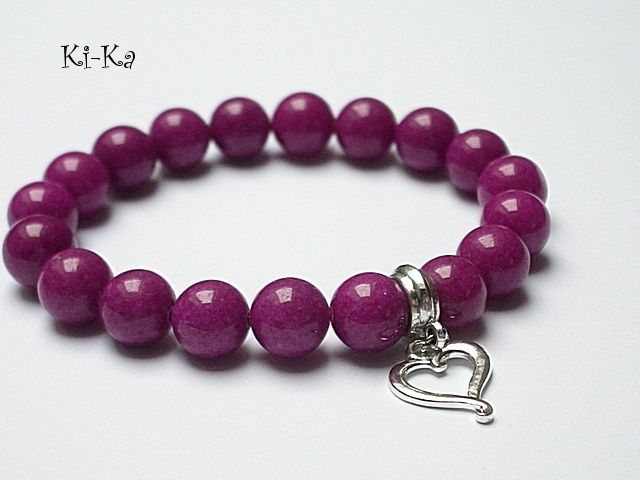 Bransoletka wykonana z naturalnych kamieni - jadeit [10mm] oraz elementów w kolorze srebra. Bransoletka na gumce silikonowej. Pasuje na nadgarstek 15-16,5cm. Biżuteria ozdobnie zapakowana Bransoletka może stanowić komplet z innymi bransoletkami dostępnym w naszej galerii - przykładowe zdjęcia.