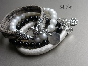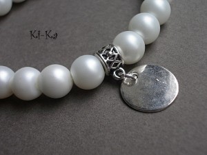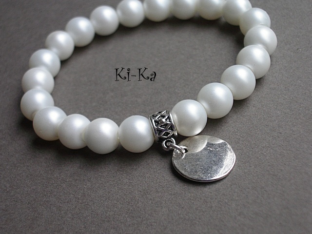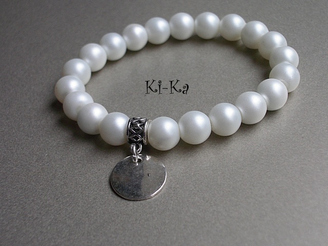 Bransoletka wykonana z matowych perełek szklanych [8mm] oraz elementów w kolorze srebra. Bransoletka na gumce silikonowej. Pasuje na nadgarstek 16-17cm. Biżuteria ozdobnie zapakowana Bransoletka może stanowić komplet z innymi bransoletkami dostępnymi w naszej galerii.
