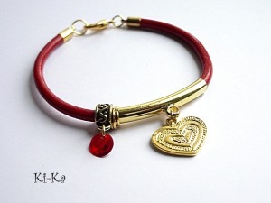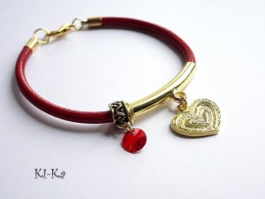 Bransoletka wykonana ze skórzanego, rzemienia, kryształka Swarovskiego [8mm siam] oraz elementów metalowych w kolorze złotym. Pasuje na nadgarstek 16-17cm. Biżuteria ozdobnie zapakowana.