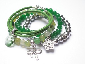 Komplet czterech bransoletek wykonanych z naturalnych kamieni: zielony onyks [8mm] ,hematyty [8mm] ,fasetowane agaty [8mm] , rzemienia z naturalnej skóry,Kryształka Swarovskiego [14mm fern green] oraz elementów metalowych w kolorze srebrnym. Bransoletki pasują na nadgarstek 18cm. Biżuteria ozdobnie zapakowana.