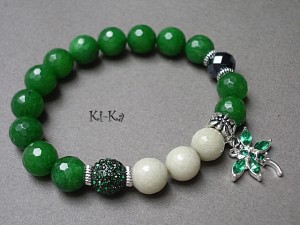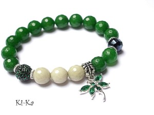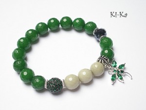 PROJEKT AUTORSKI. Bransoletka z kolekcji "RICH" charakteryzującej się wykorzystaniem w jednej bransoletce - mixu minerałów, kryształków, elementów ozdobnych, kryształków Swarovskiego, cyrkonii, przywieszek etc. . Model jest w sam sobie na tyle strojny, że nie wymaga uzupełnienia go dodatkowymi akcentami. Bransoletka wykonana z kamieni - fasetowane jadeity [10mm] ,kryształek [10mm] ekskluzywnej przekładki wysadzanej cyrkoniami kryształków [10mm] ,zawieszki z kryształkami oraz elementów w kolorze srebrnym Bransoletka na gumce silikonowej. Pasuje na nadgarstek 15-16,5cm. Biżuteria ozdobnie zapakowana. Możliwość dopasowania bransoletki do nadgarstka - wcześniej prosimy o kontakt.