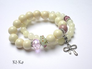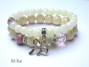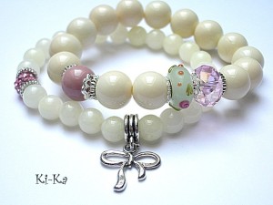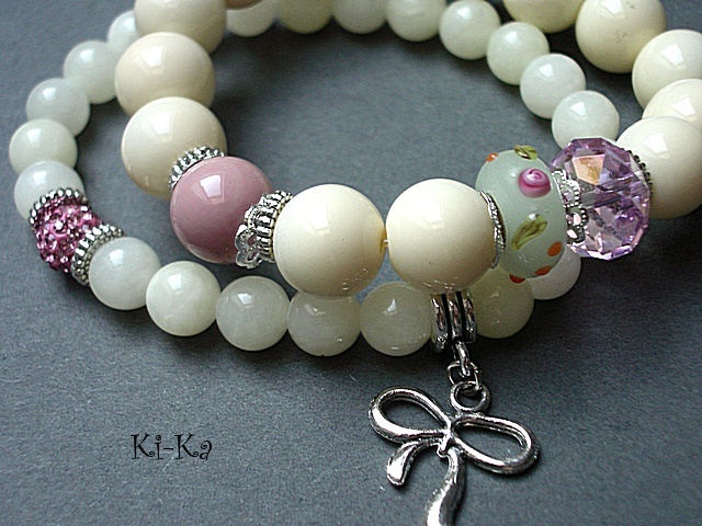 PROJEKT AUTORSKI. Bransoletka z kolekcji "RICH" charakteryzującej się wykorzystaniem w jednej bransoletce - mixu minerałów, kryształków, elementów ozdobnych, kryształków Swarovskiego, cyrkonii, przywieszek etc. Komplet dwóch bransoletek wykonany z kamieni naturalnych - jadeity [8 i 12mm], kryształka, przekładki fimo,przekładki shamballa wysadzanej kryształkami Swarovskiego oraz elementów w kolorze srebrnym. Pasują na nadgarstek 15,5 -16,5cm. Bransoletki na gumce silikonowej. Biżuteria ozdobnie zapakowana