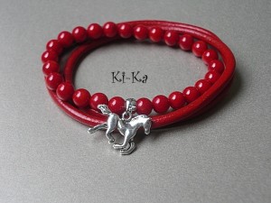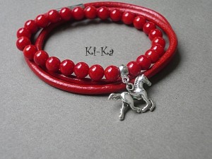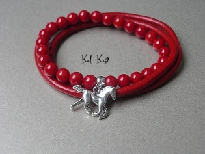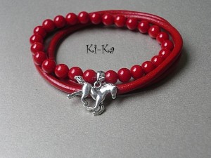 Komplet dwóch bransoletek wykonanych z naturalnego korala [8mm], rzemienia z naturalnej skóry [śr. 3mm] oraz elementów w kolorze srebra . Bransoletka z korala na gumce silikonowej. Będą pasowały na nadgarstek 15,5-16,5cm. Biżuteria ozdobnie zapakowana. Bransoletki mogą stanowić komplet z innymi modelami dostępnymi w naszej galerii - przykładowe zdjęcia.