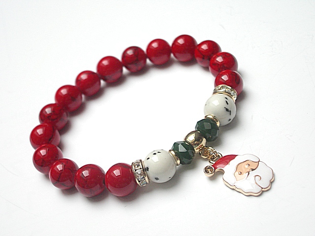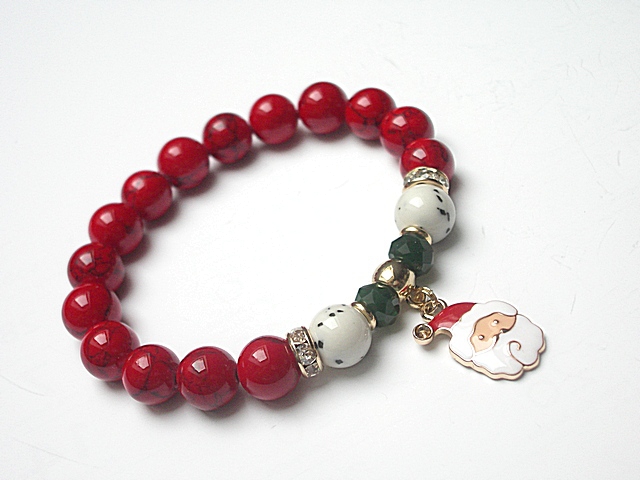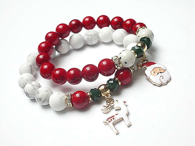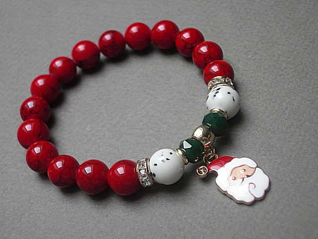 PROJEKTY AUTORSKIE. WŁASNOŚĆ KI-KA. KOPIOWANIE ZABRONIONE. Bransoletka wykonana z naturalnych kamieni - marmur [10mm], howlit [10mm], kryształków fasetowanych [6 x 8mm] oraz elementów metalowych w kolorze tzw. różowego złota. Bransoletka na gumce silikonowej. Pasuje na nadgarstek 16-17cm. Biżuteria ozdobnie zapakowana. Możliwość dopasowania bransoletki do nadgarstka - wcześniej prosimy o kontakt. Bransoletka może stanowić komplet z innymi modelami - przykładowe zdjęcia