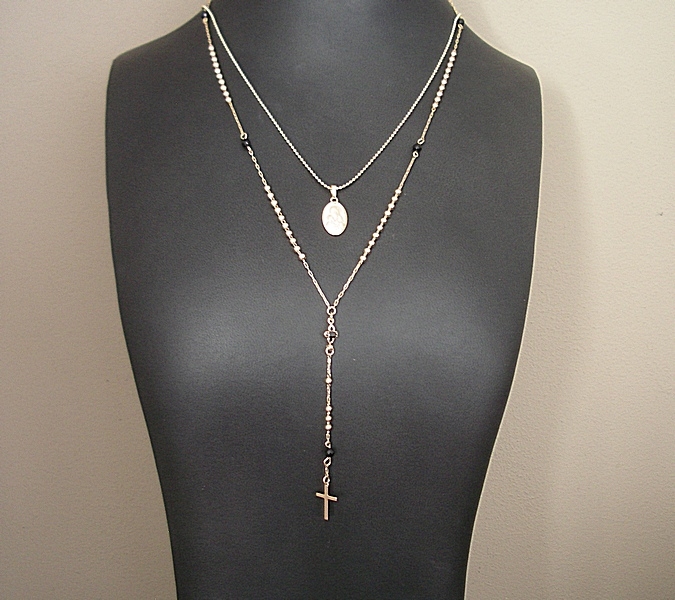 Naszyjnik wykonany z elementów metalowych pokrytych złotem. Całkowita długość naszyjnika 60cm. Biżuteria ozdobnie zapakowana.