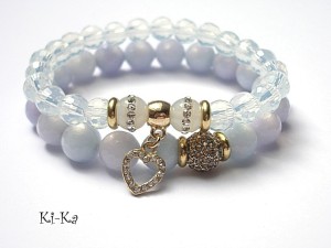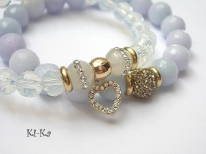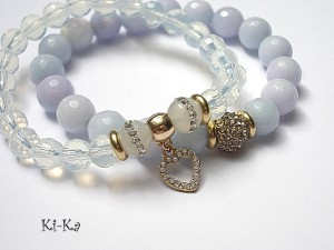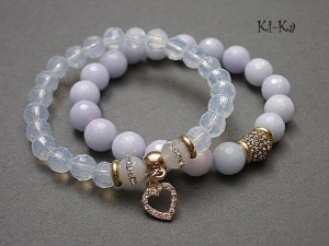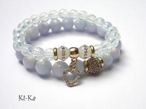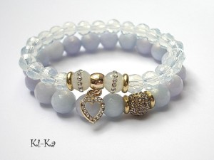 Komplet dwóch bransoletek wykonanych z naturalnych kamieni: jadeity fasetowane [10mm], agaty wysadzane cyrkoniami [8m], kryształków [8mm], ekskluzywnej przekładki wysadzanej cyrkoniami, przywieszki wysadzanej cyrkoniami oraz elementów metalowych w kolorze złota. Bransoletki na gumce silikonowej. Pasują na nadgarstek 16-17cm. Biżuteria ozdobnie zapakowana. Możliwość dopasowania bransoletek do nadgarstka - wcześniej prosimy o kontakt.