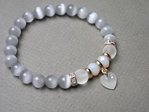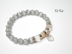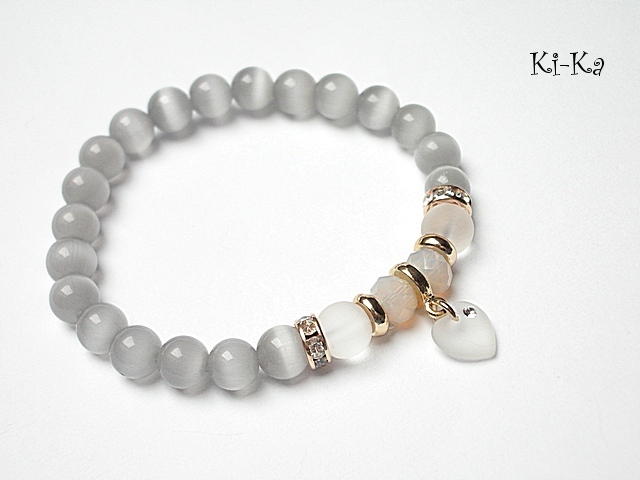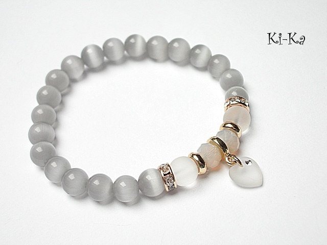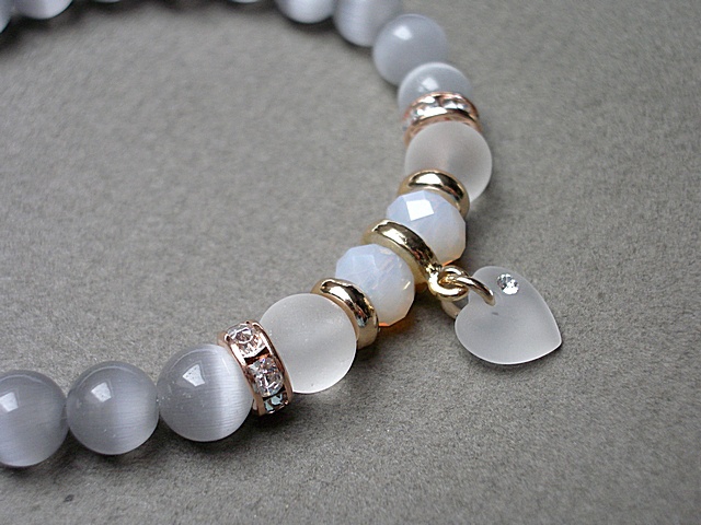PROJEKTY AUTORSKIE.KOPIOWANIE ZABRONIONE. Bransoletka wykonana z kamieni - uleksyt [8mm] , matowego szkła [8mm], kryształków fasetowanych [6 x 8mm], zawieszki serca kryształka Swarovskiego [10mm] oraz elementów w kolorze różowego złota. Bransoletka pasuje na nadgarstek 16-17cm. Biżuteria ozdobnie zapakowana
