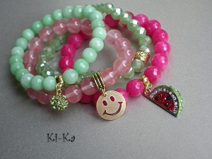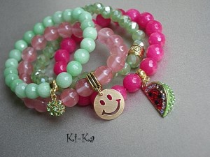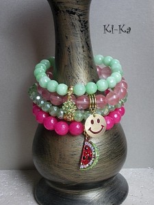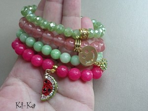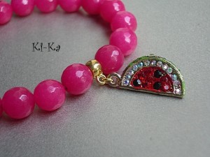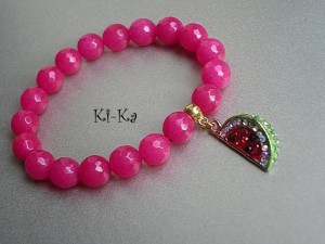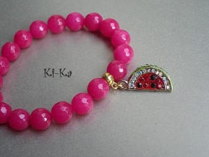 Bransoletka wykonana z naturalnych minerałów -jadeit fasetowany [10mm] oraz elementów metalowych w kolorze złota [w tym przywieszka wysadzana kryształkami].Pasuje na nadgarstek 15-16cm. Bransoletka na gumce silikonowej. Biżuteria ozdobnie zapakowana. Bransoletka może stanowić komplet z innymi bransoletkami - przykładowe zdjęcia.