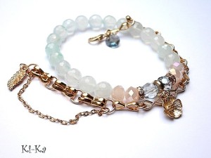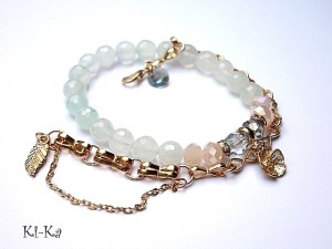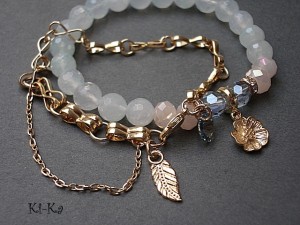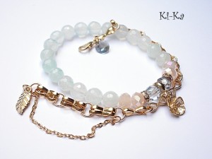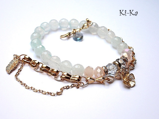 Komplet dwóch bransoletek wykonany z naturalnych kamieni - fasetowany kwarc [8mm] , kryształków [6 x 8mm], kryształka Swarovskiego oraz elementów w kolorze tzw. różowego złota. Bransoletka z łańcuszka pochodzi z naszej nowej Kolekcji Autorskiej ''Line'' .Ogniwka ręcznie splatane. Pasuje na nadgarstek 15,5-16,5cm. Bransoletka z kamieni na gumce silikonowej. Biżuteria ozdobnie zapakowana