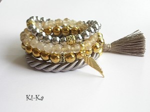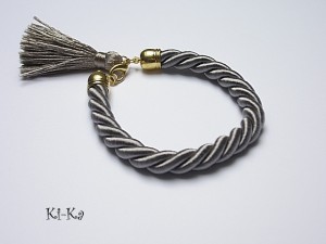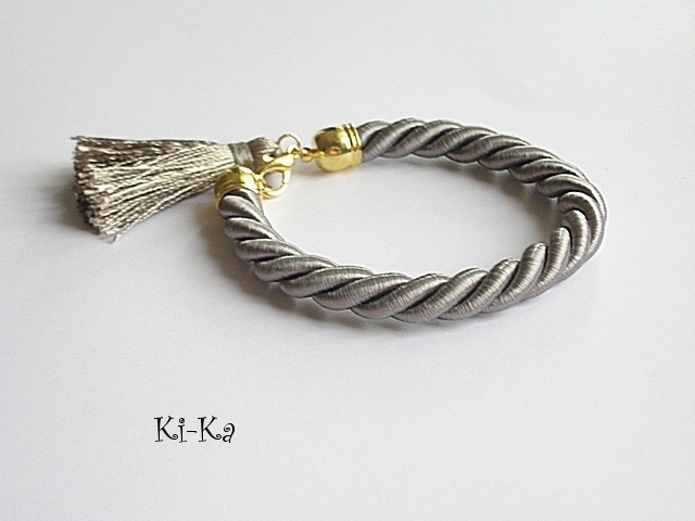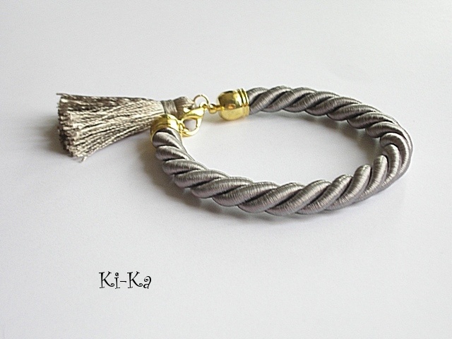 Bransoletka wykonana ze sznurka, satynowego chwostu oraz elementów w kolorze złota. Pasuje na nadgarstek 15- 16,5cm. Biżuteria ozdobnie zapakowana. Bransoletka może stanowić komplet z innymi - przykładowe zdjęcia.