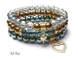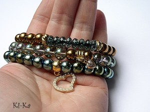 Komplet trzech bransoletek wykonanych z naturalnych minerałów: hematyty [8mm] ,fasetowane oponki kwarców w kolorze morskim [8mm] ,kuleczek kwarców z efektem mystic [8mm] oraz elementów metalowych w kolorze złotym. Bransoletki pasują na nadgarstek 15-16,5cm. Biżuteria ozdobnie zapakowana. Możliwość dopasowania bransoletek do nadgarstka - wcześniej prosimy o kontakt.