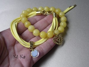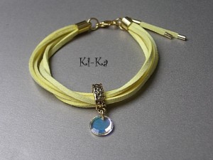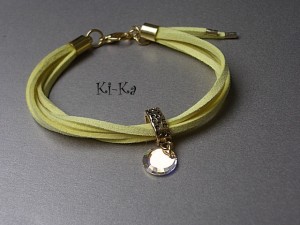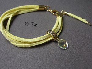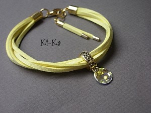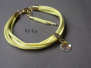 Delikatna bransoletka wykonana z zamszowego rzemienia, kryształka Swarovskiego oraz elementów w kolorze złota . Pasuje na nadgarstek 15,5-16,5cm Biżuteria ozdobnie zapakowana. Bransoletka może stanowić komplet z innymi bransoletkami dostępnymi w naszej galerii - przykładowe zdjęcia setu.