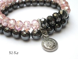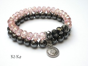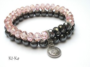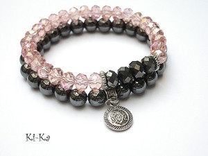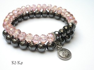 Komplet dwóch bransoletek wykonany z naturalnych kamieni - hematyty [ 8mm ],kryształki [8mm] oraz elementów w kolorze srebrnym. Bransoletki na gumce silikonowej. Pasują na nadgarstek 15-16,5cm. Biżuteria ozdobnie zapakowana. Możliwość dopasowania bransoletki do nadgarstka - wcześniej prosimy o kontakt.