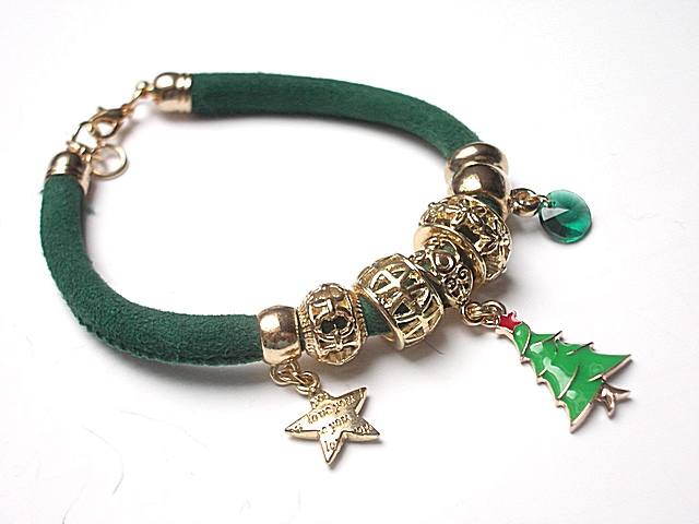 Bransoletka wykonana z rzemienia z naturalnej, mięciutkiej skórki cielęcej [śr. 6mm], zawieszki z kryształka oraz elementów metalowych w kolorze tzw. różowego złota. Bransoletka pasuje na nadgarstek 16-17cm. Biżuteria ozdobnie zapakowana.