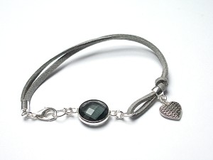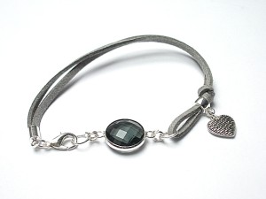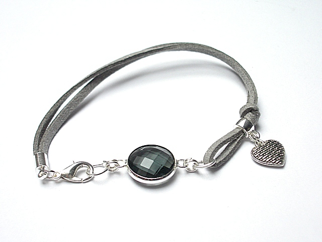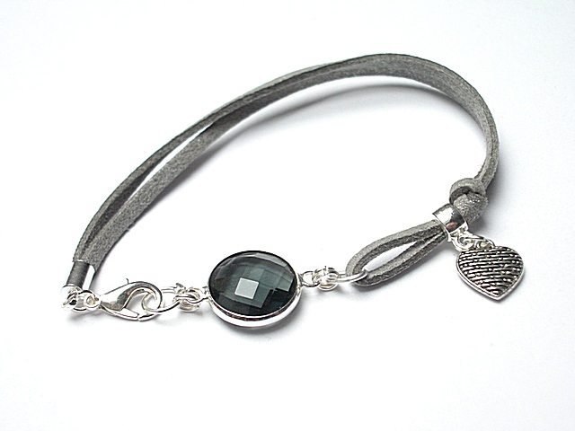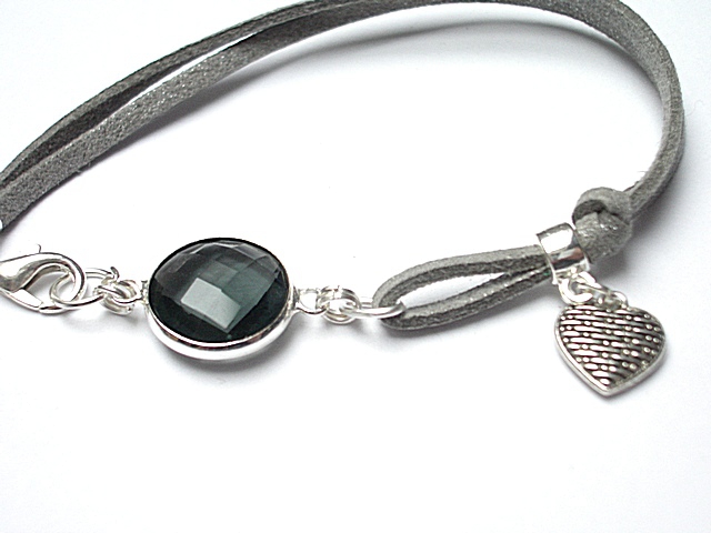Bransoletka wykonana z rzemienia z zamszu ekologicznego ,efektownego łącznika w okuciu [12mm] oraz elementów w kolorze srebrnym .Całkowita długość bransoletki 19cm. Możliwość dopasowania do nadgarstka - wcześniej prosimy o kontakt. Biżuteria ozdobnie zapakowana.