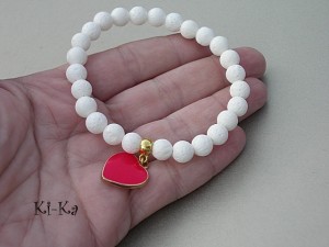 Bransoletka wykonana z naturalnego korala [8mm] oraz elementów w kolorze złota. Pasuje na nadgarstek 15- 16,5cm. Bransoletka na gumce silikonowej. Biżuteria ozdobnie zapakowana.