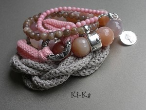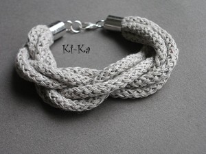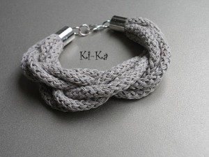 Bransoletka wykonana z elementów metalowych w kolorze srebra oraz bawełnianych sznurków w kolorze beżowym . Będzie pasowała na nadgarstek 15 -16cm [istnieje możliwość powiększenia bransoletki]. Biżuteria ozdobnie zapakowana. Bransoletka może być dodatkiem do innych bransoletek -przykładowe zdjęcie