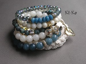 Bransoletka wykonana ze sznurków zaplecionych w warkocz oraz elementów w kolorze srebra. Pasuje na nadgarstek 15- 16,5cm. Biżuteria ozdobnie zapakowana. Zdjęcie pierwsze przedstawia przykładowy set.Cena dotyczy bransoletki ze sznurka.