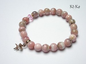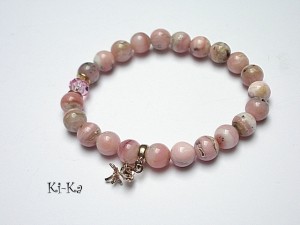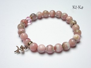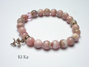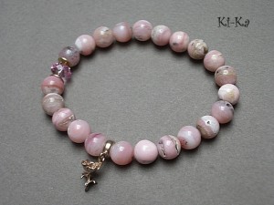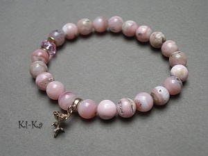 Bransoletka wykonana z naturalnych minerałów - opale 8mm, kryształka Swarovskiego [8mm] oraz elementów z mosiądzu. Bransoletka na gumce silikonowej. Pasuje na nadgarstek 15-16,5cm. Biżuteria ozdobnie zapakowana.