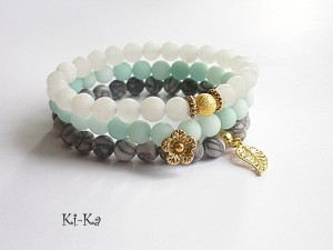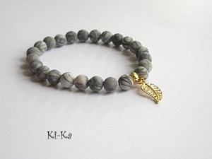 Bransoletka wykonana z naturalnych minerałów - jaspis matowy [8mm] oraz elementów w kolorze złota. Pasuje na nadgarstek 15- 16,5cm. Bransoletka na gumce silikonowej. Biżuteria ozdobnie zapakowana. Bransoletka może stanowić komplet z innymi - przykładowe zdjęcia.