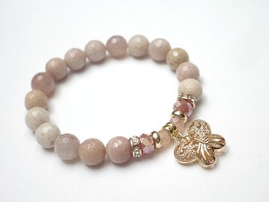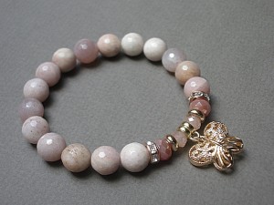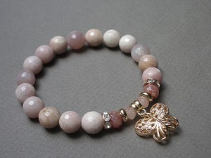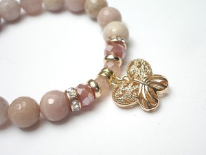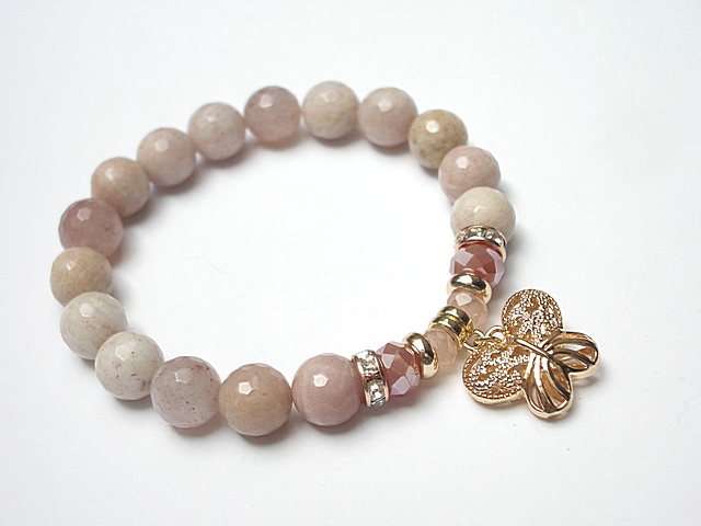 Bransoletka wykonana z kamieni naturalnych - kamień słoneczny [10mm], kryształków fasetowanych [6 x 4mm i 8 x 6mm], przywieszki 3D w kształcie motylka oraz elementów metalowych w kolorze złota. Bransoletka na gumce silikonowej. Pasuje na nadgarstek 16-17cm. Biżuteria ozdobnie zapakowana. Możliwość dopasowania bransoletki do nadgarstka - wcześniej prosimy o kontakt.