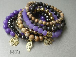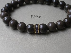 Bransoletka wykonana z naturalnych minerałów - jaspis kawowy [8mm] oraz przekładki wysadzanej cyrkoniami. Pasuje na nadgarstek 15- 16,5cm. Bransoletka na gumce silikonowej. Biżuteria ozdobnie zapakowana. Bransoletka może stanowić komplet z innymi - przykładowe zdjęcia.