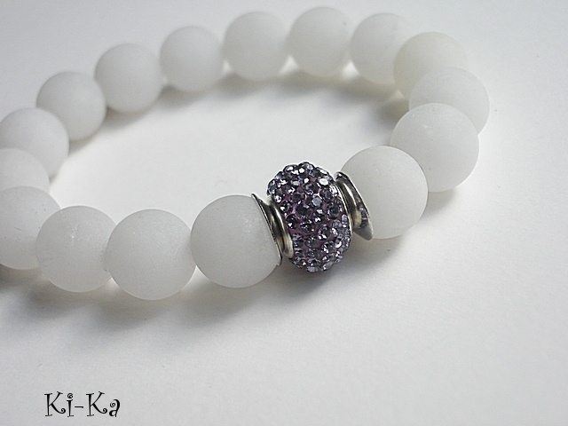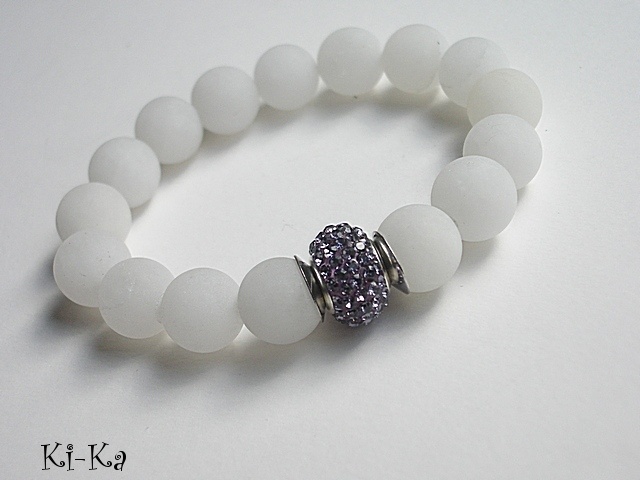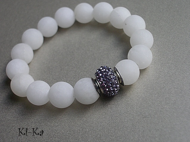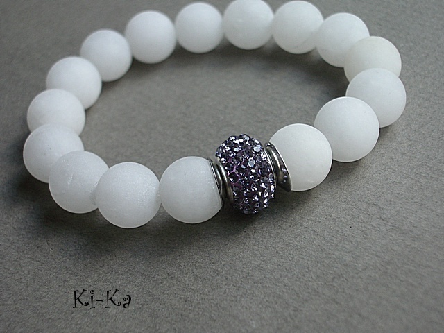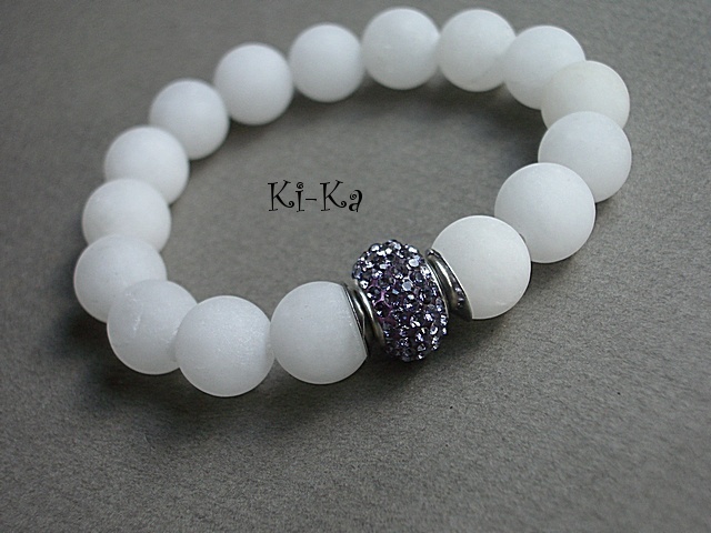 Bransoletka wykonana z naturalnych minerałów - agaty matowe [12mm] oraz elementów w kolorze srebra [przekładka wysadzana cyrkoniami/ Bransoletka na gumce silikonowej. Pasuje na nadgarstek 15-16,5cm. Biżuteria ozdobnie zapakowana Bransoletka może stanowić komplet z innymi bransoletkami dostępnym w naszej galerii - przykładowe zdjęcia.
