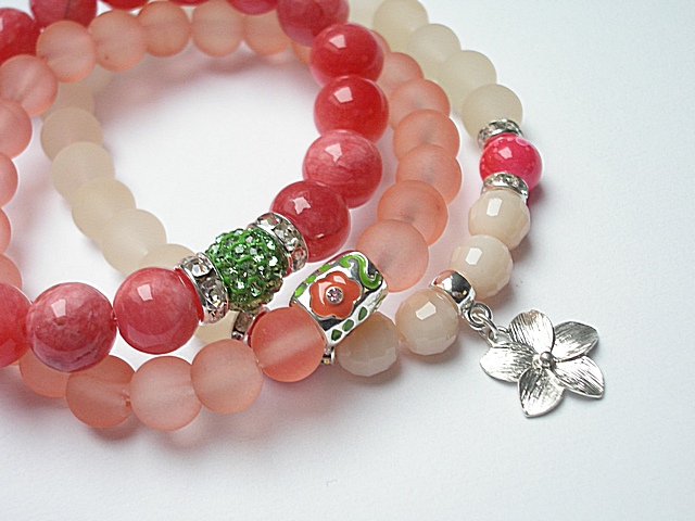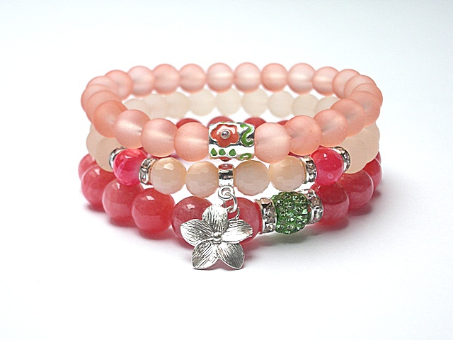 PROJEKT AUTORSKI. WSZELKIE INNE PODOBNE MODELE TO KOPIE NARUSZAJĄCE PRAWA AUTORSKIE. Komplet trzech bransoletek wykonanych z naturalnych kamieni: jadeit fasetowany [8mm], jadeit gładki [10mm], szkła matowego [8mm], przekładki shamballa wysadzanej kryształkami Swarovskiego oraz elementów metalowych w kolorze srebra. Bransoletki pasują na nadgarstek 16 - 17cm. Biżuteria ozdobnie zapakowana