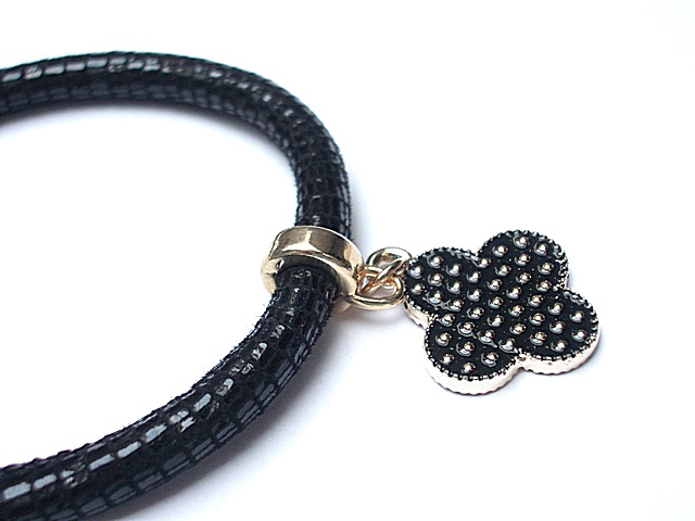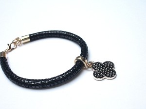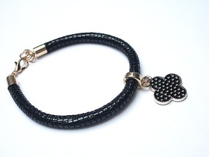 Bransoletka wykonana z rzemienia z naturalnej ,mięciutkiej koziej skórki oraz elementów w kolorze tzw. różowego złota. . Bransoletka pasuje na nadgarstek 16 - 17cm. Biżuteria ozdobnie zapakowana.