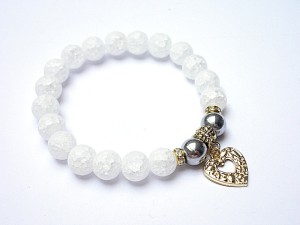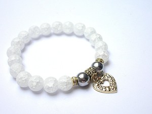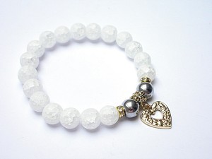 Bransoletka wykonana z naturalnych kamieni- matowy kwarc lodowy [10mm], hematyt [10mm], oraz elementów metalowych w kolorze bladego złota. Bransoletka na gumce silikonowej. Pasuje na nadgarstek 16-17cm. Biżuteria ozdobnie zapakowana. Możliwość dopasowania bransoletki do nadgarstka - wcześniej prosimy o kontakt.