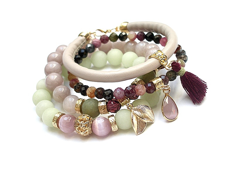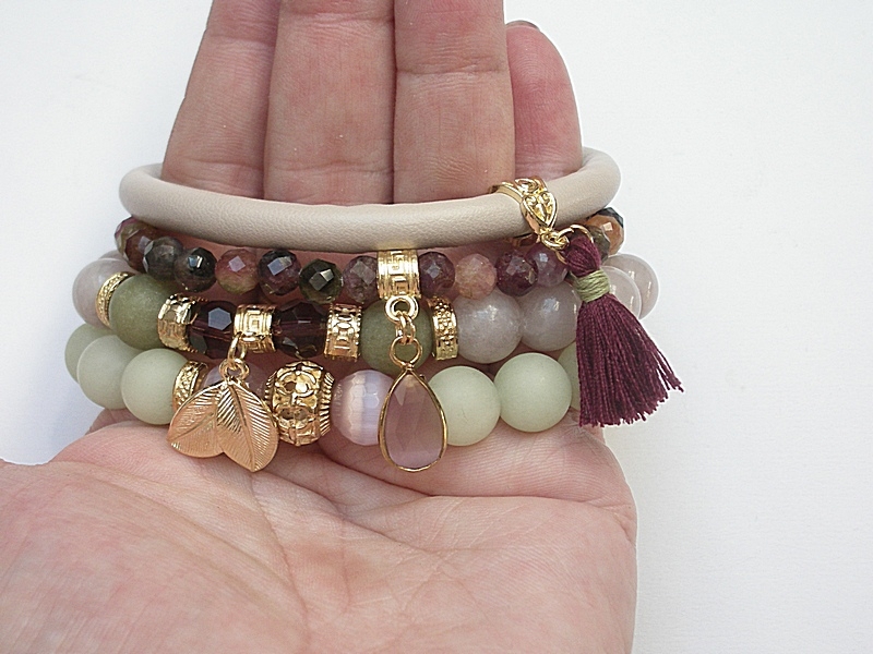 złotym. Bransoletki z kamieni na gumce silikonowej. Pasują na nadgarstek