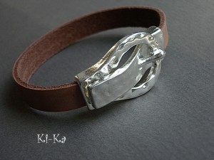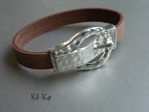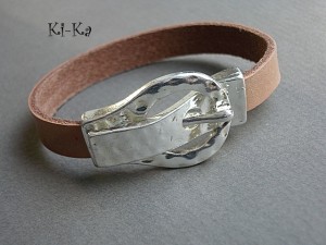 Bransoletka wykonana ze skórzanego rzemienia w kolorze naturalnego beżu [szer. 10mm] oraz zapięcie w kolorze srebra w kształcie klamerki do paska. Pasuje na nadgarstek 15 -16cm. Biżuteria ozdobnie zapakowana. Bransoletka może stanowić komplet z innymi bransoletkami - przykładowe zdjęcia