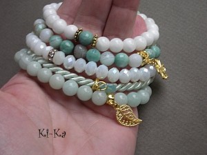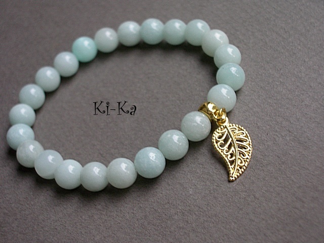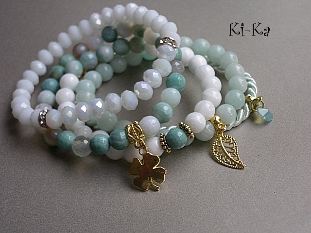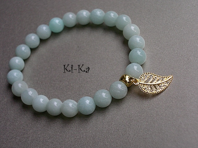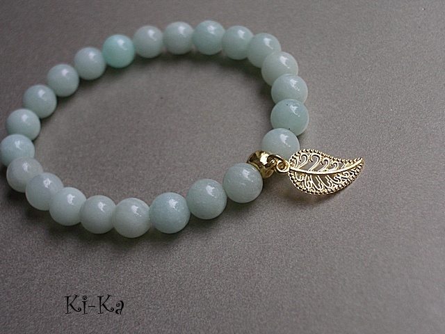 Bransoletka wykonana z naturalnych minerałów - miętowe jadeity [8mm] oraz elementów w kolorze złota. Bransoletka na gumce silikonowej. Pasuje na nadgarstek 15-16,5cm. Biżuteria ozdobnie zapakowana Bransoletka może stanowić komplet z innymi modelami dostępnymi w naszej galerii - przykładowe zdjęcia.