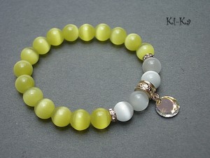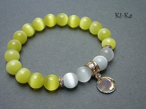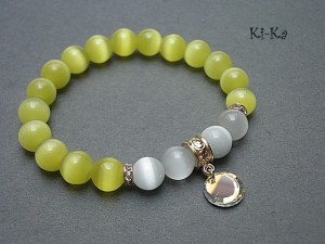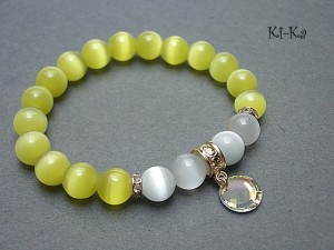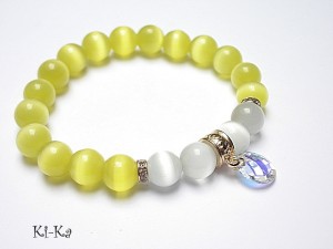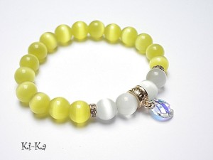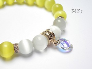 PROJEKT AUTORSKI. Bransoletka wykonana z naturalnych kamieni - kuleczki uleksytów [10mm] .kryształka Swarovskiego [12mm] oraz elementów w kolorze tzw.różowego złota. Bransoletka na gumce silikonowej. Pasuje na nadgarstek 16-17cm. Biżuteria ozdobnie zapakowana. Możliwość dopasowania bransoletki do nadgarstka - wcześniej prosimy o kontakt.